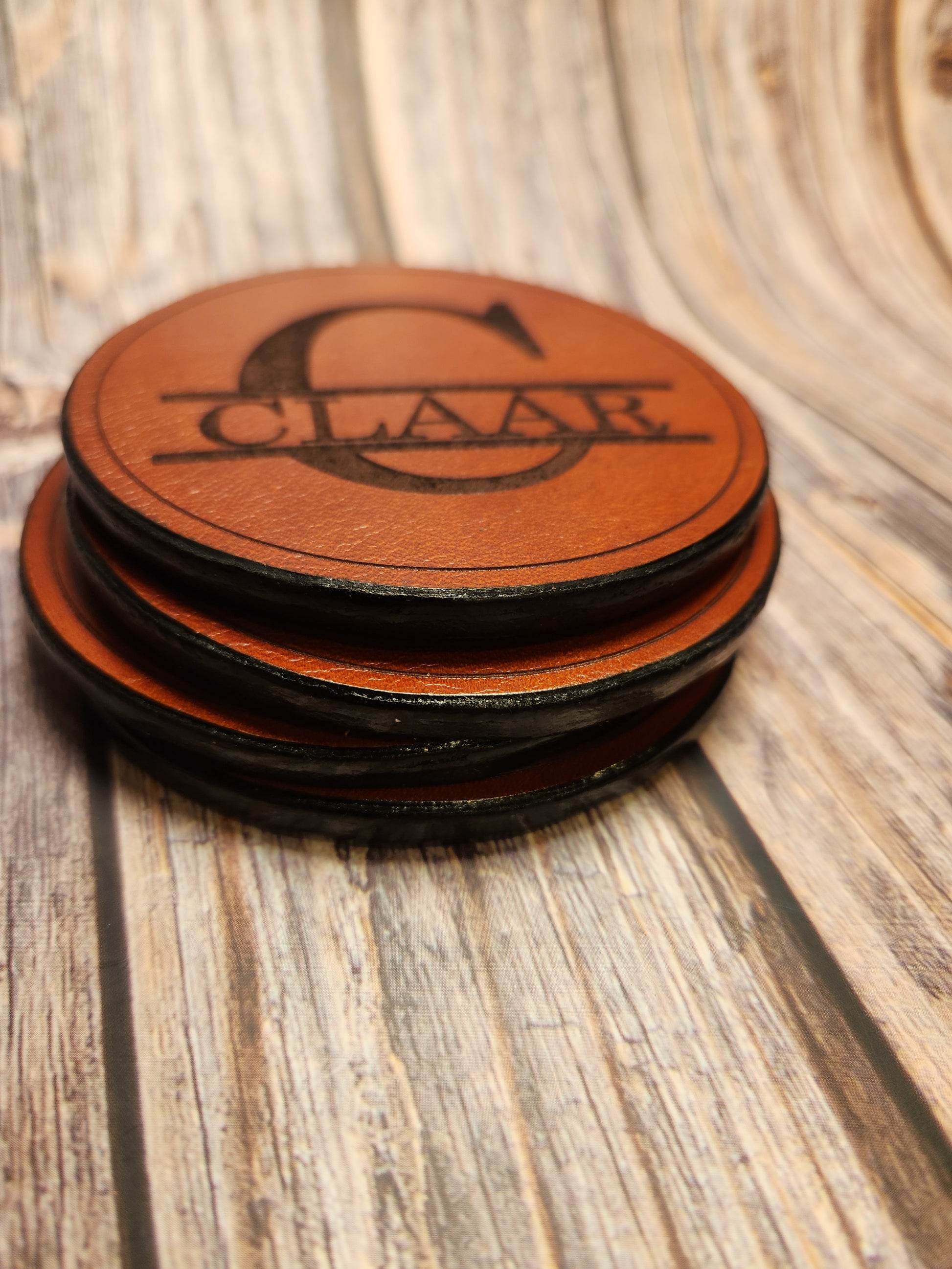 Full-Grain American Leather Coasters – Set of 4 Custom Engraved| Handmade in the USA