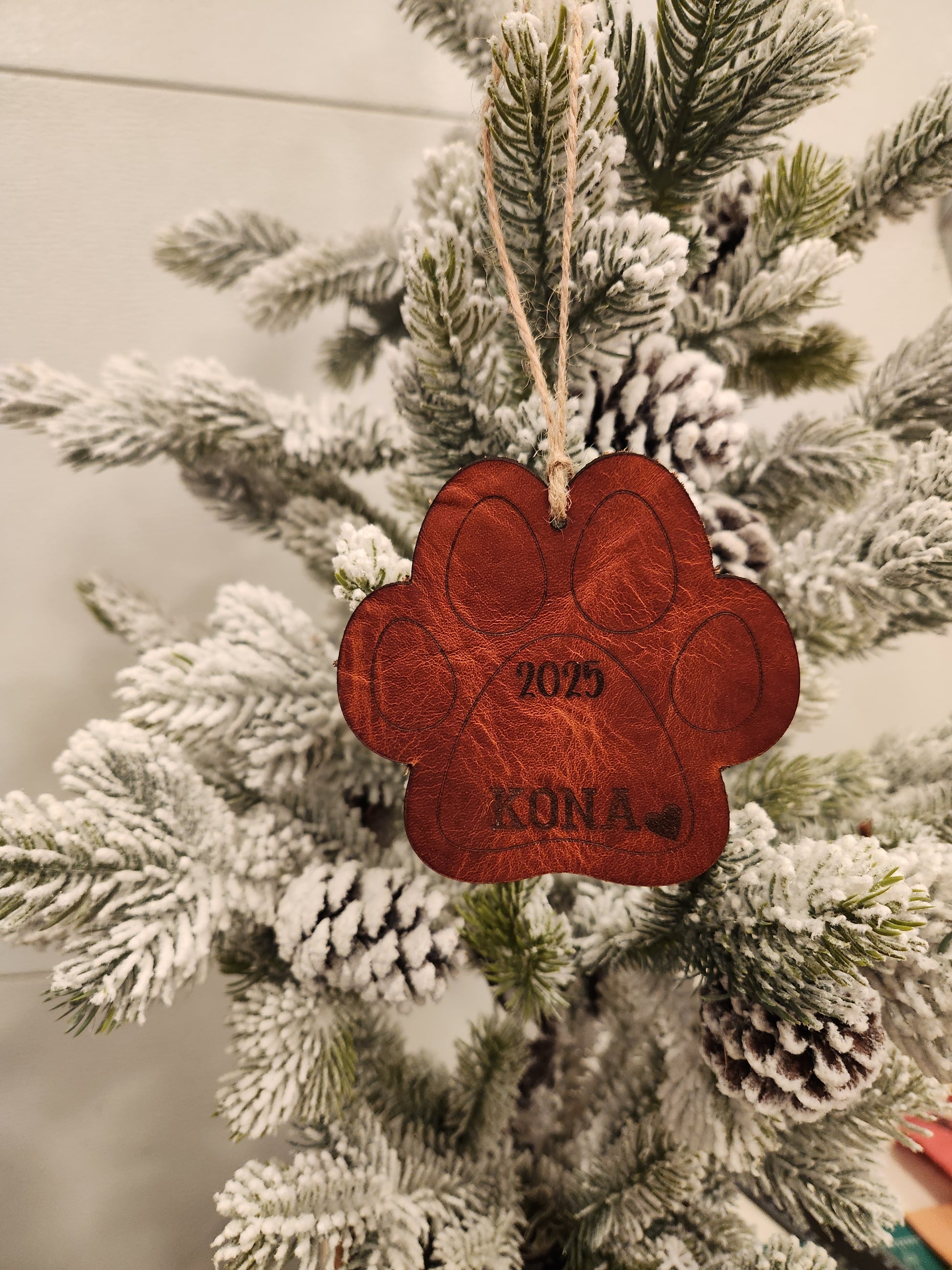 Personalized Full-Grain American Leather Pet Paw Ornament | Custom Name & Year | Dog or Cat Keepsake & Memorial | Handmade in the USA
