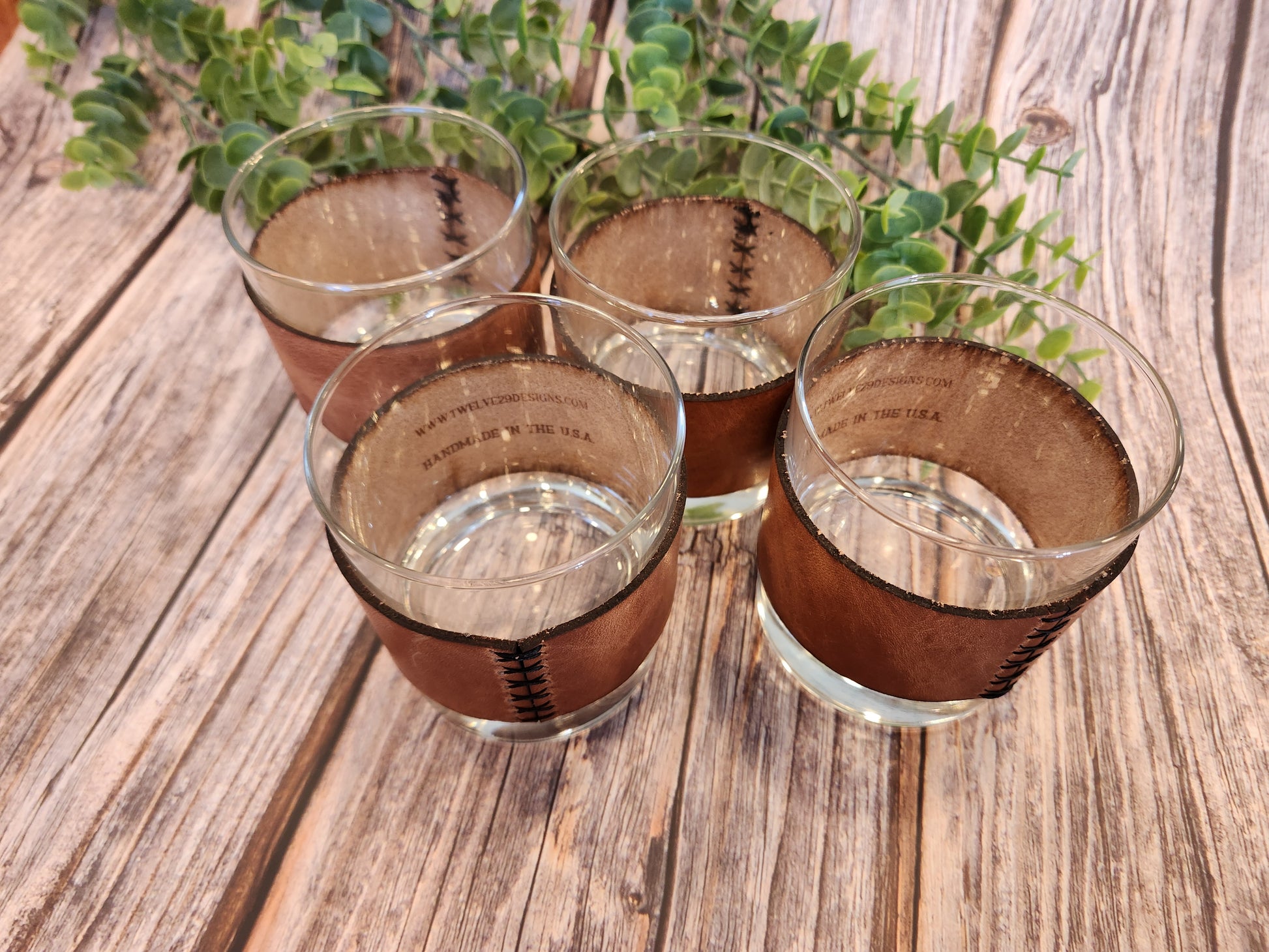 Handcrafted Full-Grain American Leather Rocks Glass Sleeve | Includes 10oz Glass | Custom Laser Engraved | Heirloom Quality Barware